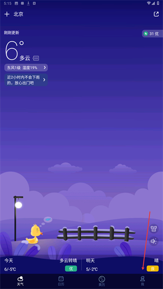 1、启动天气预报网App,进入时点击底部我的按钮。