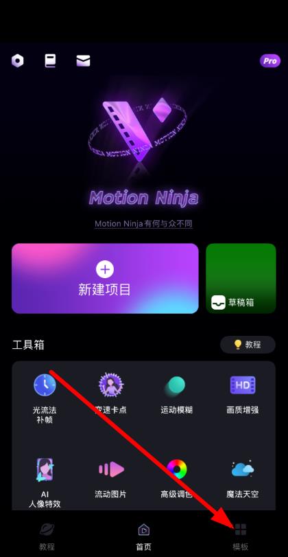 1、打开alightmotion应用,点击底部导航栏中模板选项。