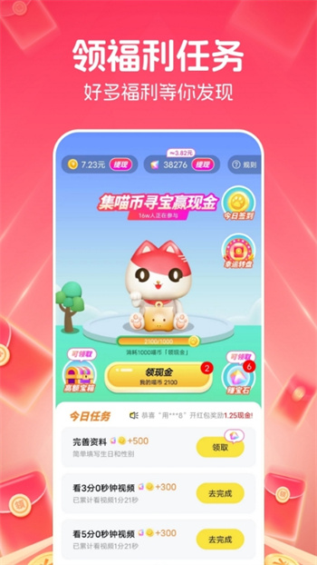 - 直接领取,直接领取到现金红包,享受即时收益,在各种丰富的任务之中,现金红包领取不断,提供更多赚钱机会。
