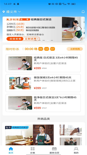 - 提供保洁包年、深度清洁、保姆服务、家庭用品等服务,用户可以轻松的在线选择预约服务;
