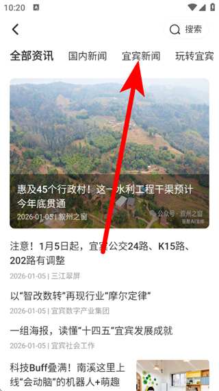 2、在全部资讯分类页面,点击宜宾新闻,进入新闻列表页面。