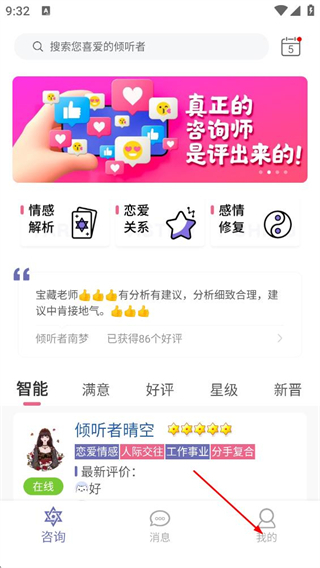 平台展示大量真人解读的真实用户评价,涵盖咨询师专业度、解决效果等维度,用户可直观了解咨询师能力,轻松筛选匹配自身需求的情感顾问,避免盲目选择。