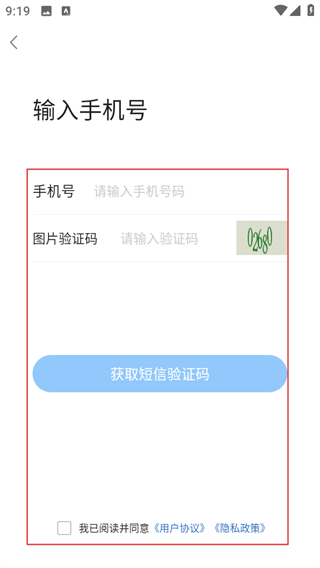 4、在输入手机号页面,填写信息并勾选协议后,即可完成注册流程。