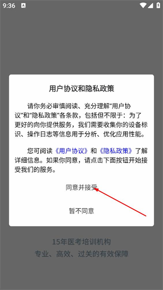 1、阅读用户协议和隐私政策后,点击同意,进入登录页面。
