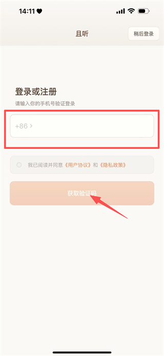 1、阅读用户协议和隐私政策后,点击首次使用须知的同意,进入登录或注册页面。