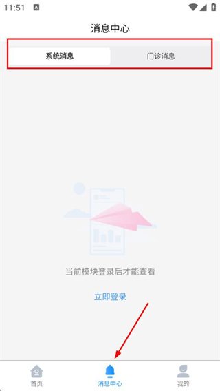 2、设有消息中心板块,包含系统消息和门诊消息分类,方便用户及时获取疫苗接种相关通知。