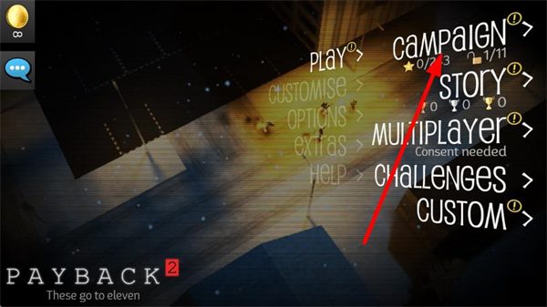 2、选择CAMPAIGN进入关卡,这是游戏的主线玩法。