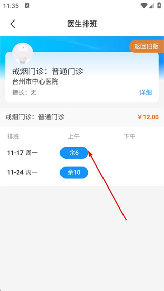 5、在医生排班页面选择就诊时段,即可完成预约挂号操作。