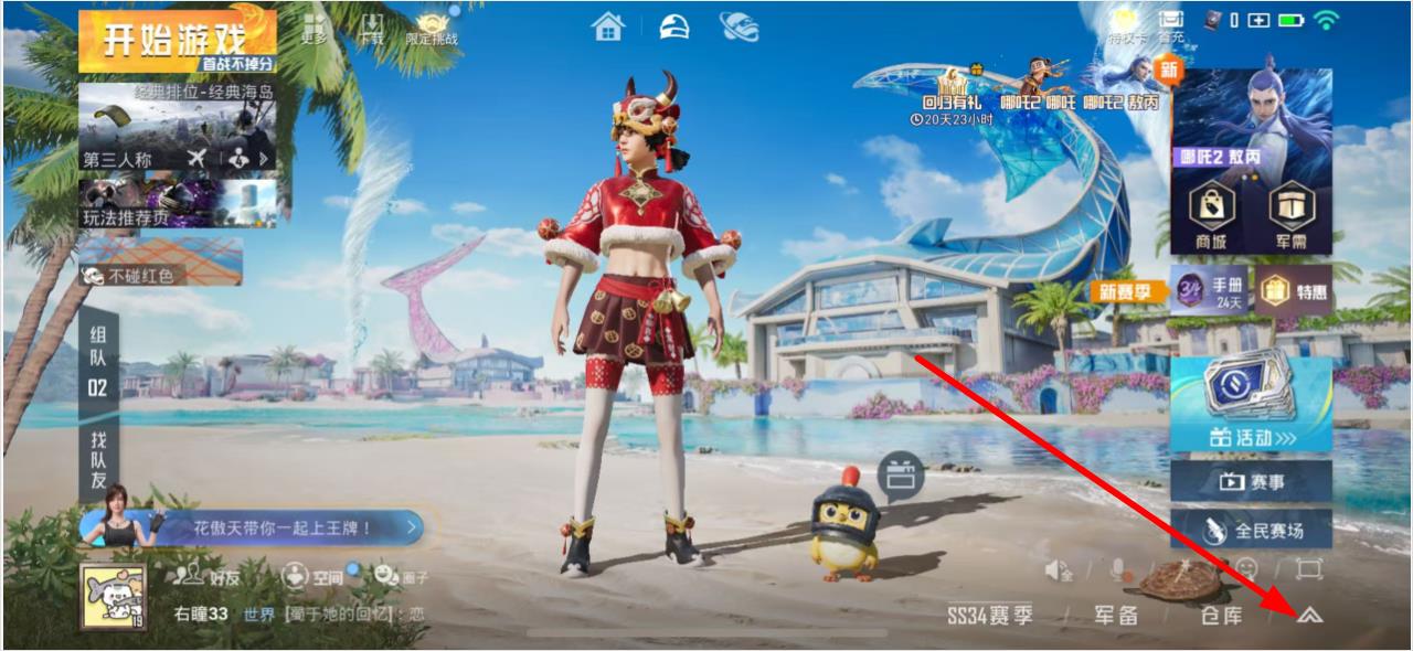 1、在游戏主界面点击右下角展开按钮,选择邮件选项。