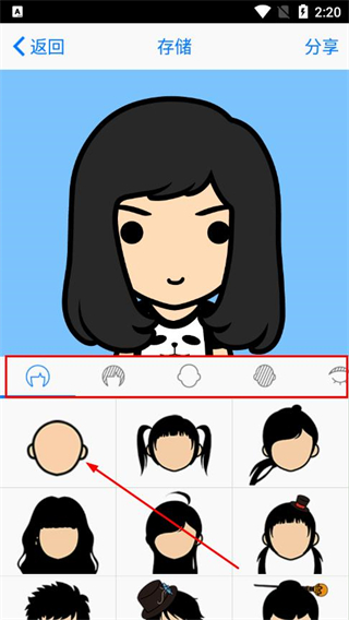 用脸萌打造个性化头像方法很简单。用户首先选择所制作头像的性别,通过左右滑动页面可切换类别,比如发型、发色、脸型、肤色、眉毛这些基本的制作动漫头像所需要的素材。