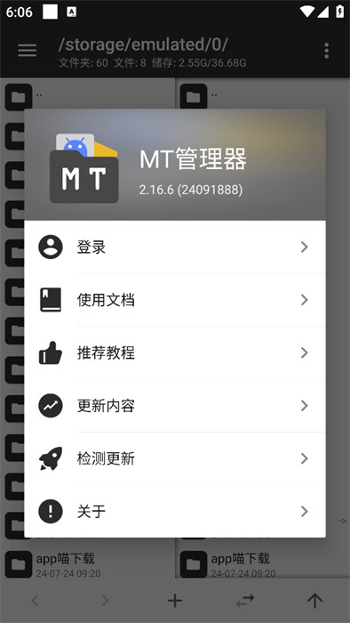 1、启动MT管理器后,在弹出的功能菜单中找到登录选项并点击,进入登录操作页面。
