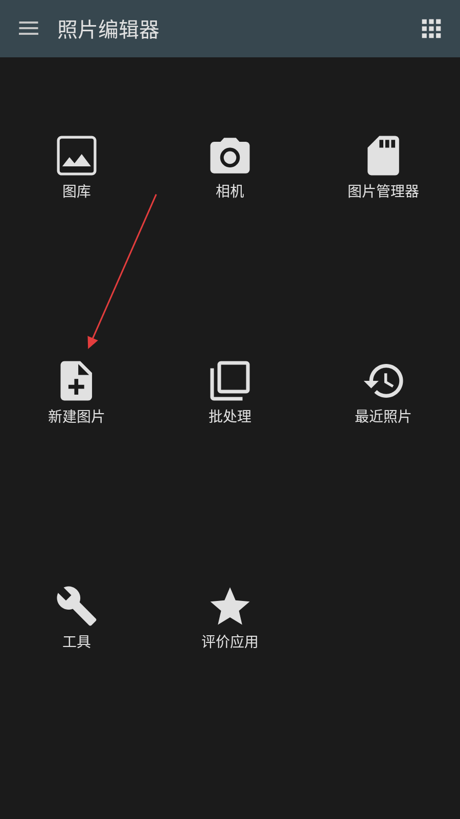 1、在照片编辑器主界面,点击图库,进入图片选择页面。