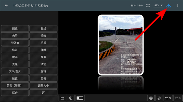 4、编辑完成后,点击右上角的下载按钮,即可保存编辑后的照片。