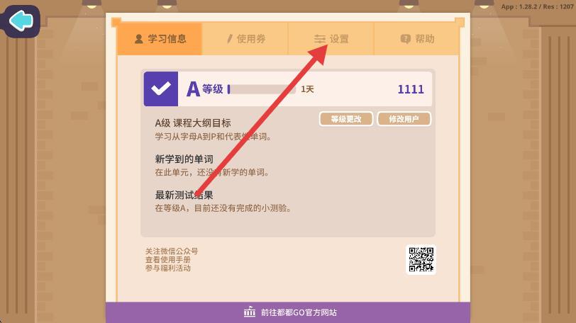 1、打开都都GO,点击界面左上角的家长选项。
