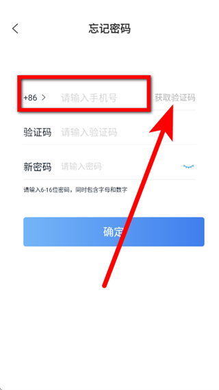 3、在忘记密码页面,输入手机号,点击获取验证码。