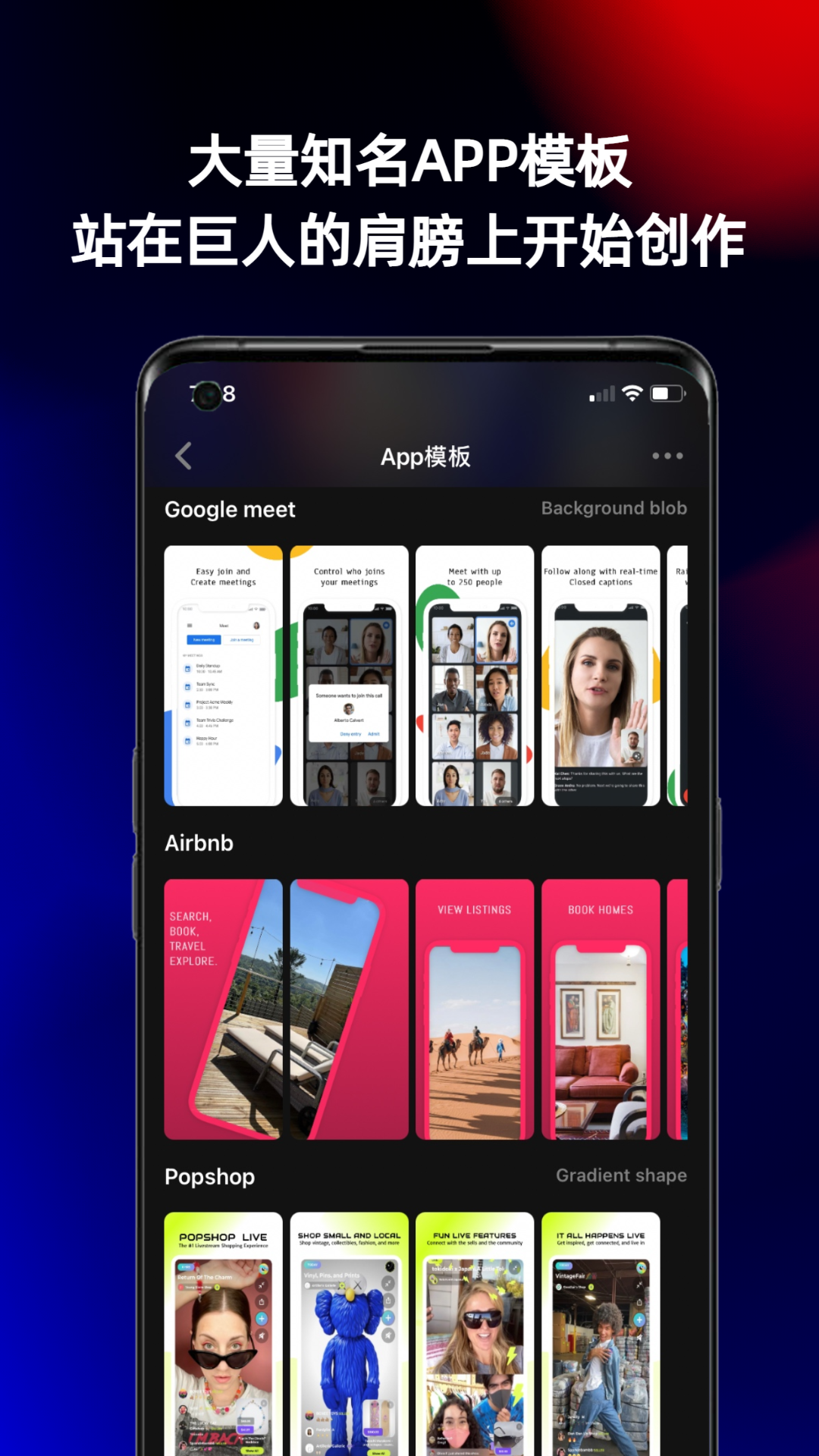 5、快速制作:高效操作流程,快速制作出高质量设计作品,适用于应用商店上架、广告宣传等场景。