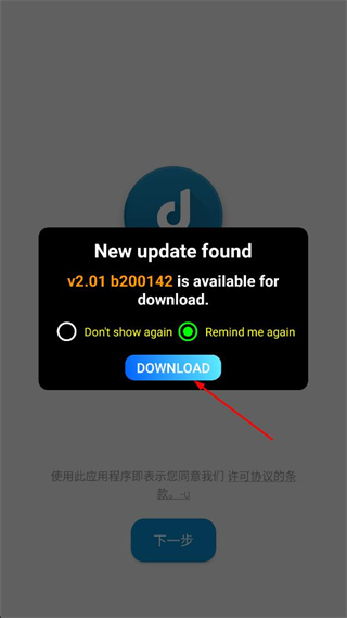1、看到软件更新提示弹窗,选择对应的选项后,点击下载按钮开始软件版本更新。