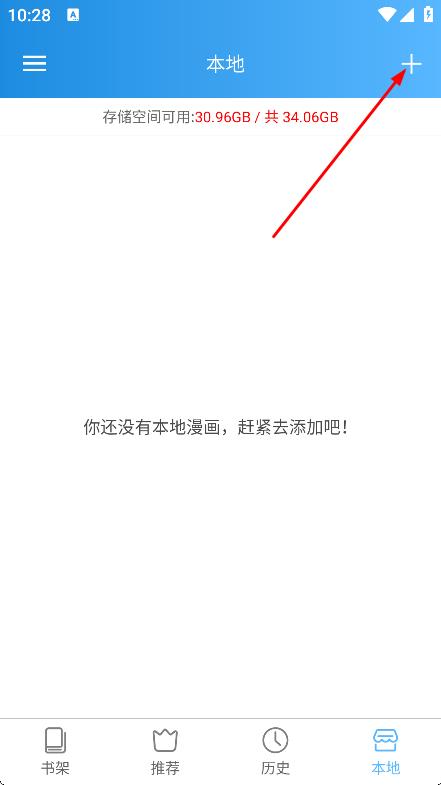 3、在本地页面,点击右上角+号,进入文件选择页面。