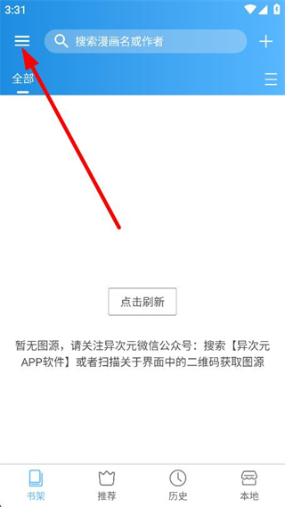 1、打开异次元App,点击界面左上角的菜单按钮。