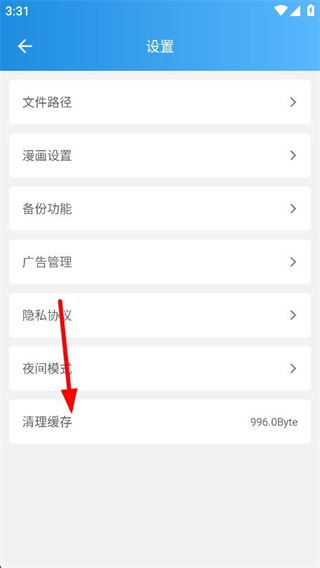 3、在设置界面中找到清理缓存,点击即可完成操作。