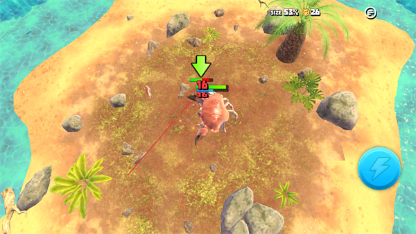 2、持续攻击小生物,积累数值,让螃蟹体型逐步变大,增强战斗力。