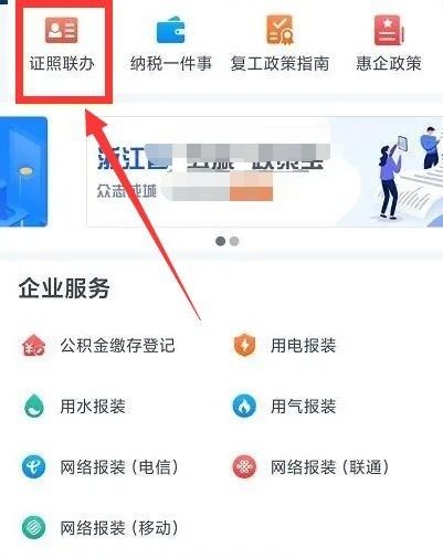 2.进入界面,点击“证照联办”。