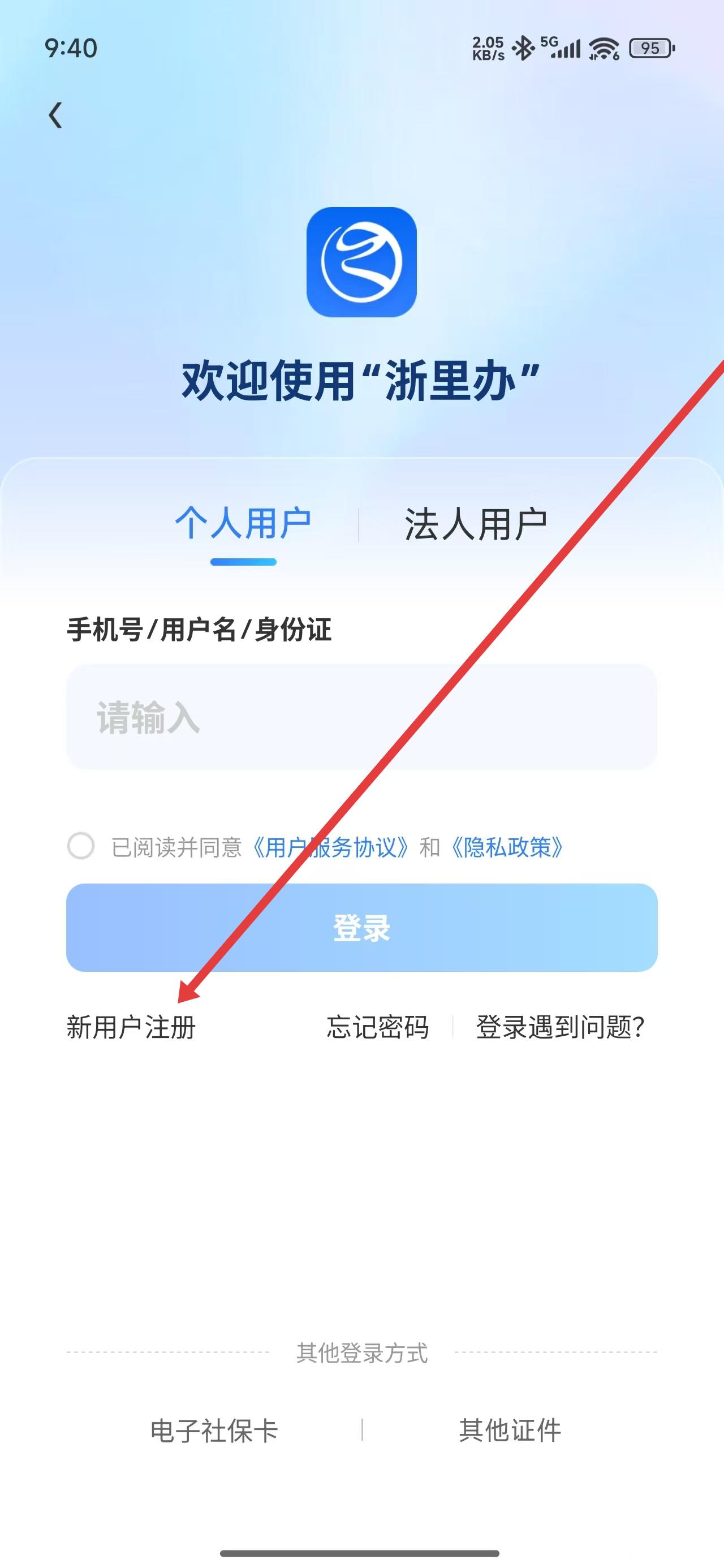 浙里办怎么注册新账号