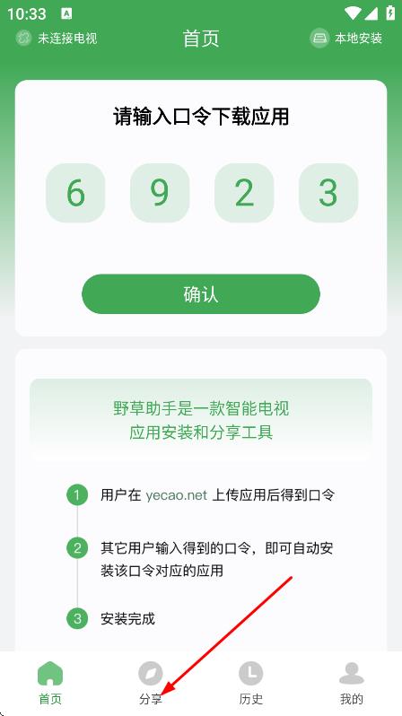 2、输入口令装应用:打开野草助手,在指定区域输入获取的口令,系统自动识别并匹配对应应用,点击确认后即可开始安装,过程无需手动搜索查找。