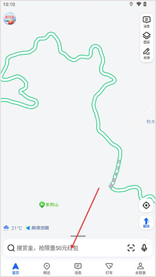 1、在高德地图主界面,点击底部搜索框,进入搜索页面。