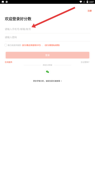 3、进入登录界面后,在请输入手机号/邮箱/账号栏填写信息,完成账号登录前的信息录入,准备开启学习之旅。