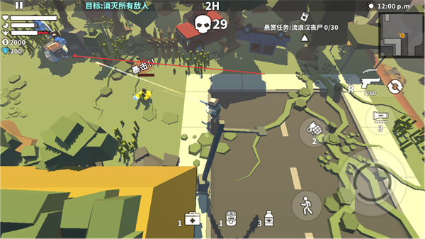 4、持续攻击剩余丧尸,提升击杀数,逐步完成关卡目标。