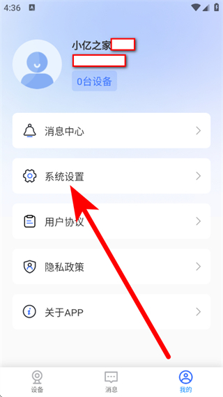1、在小亿之家设备页面,点击底部我的,进入个人页面。