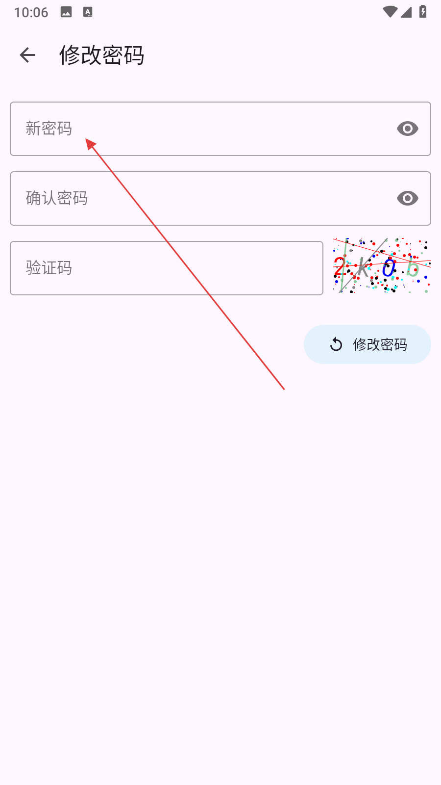 3、在修改密码界面,依次输入新密码,确认密码,并填写右侧验证码,输入完成后点击修改密码按钮,完成密码修改操作。