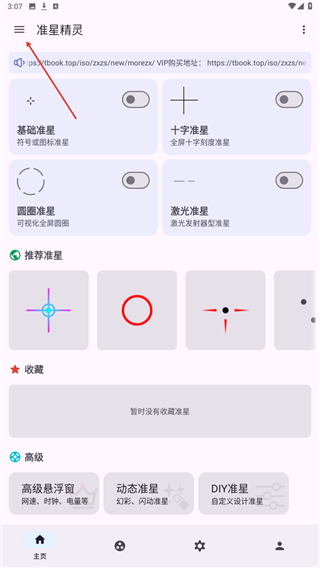 1、打开准星精灵应用,点击左上方三个横线的按钮。
