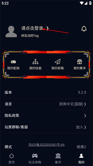 1、进入暗黑核主界面,点击下方的我的选项,进入个人中心页面。