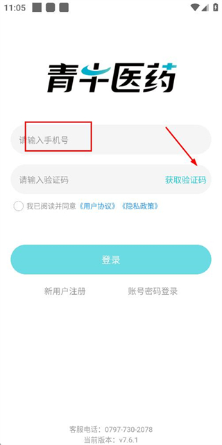 2、在登录页面填写手机号,勾选协议后,点击获取验证码。