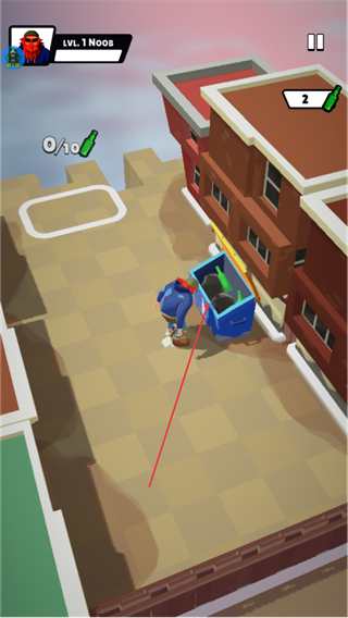 1、操控角色移动到垃圾桶位置,翻找垃圾桶获取物品如绿色道具,积累资源。