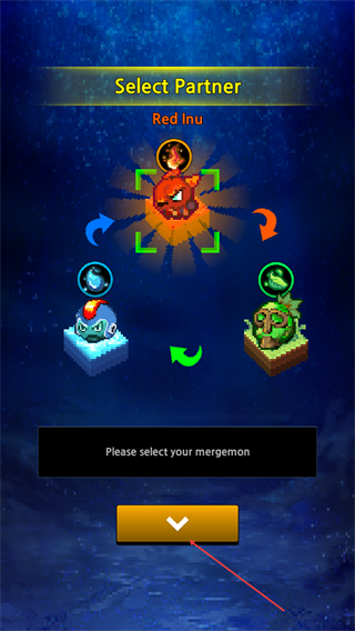 1、在Select-Partner界面挑选属性怪物,选定后即可进入与该怪物属性匹配的关卡,开启冒险。