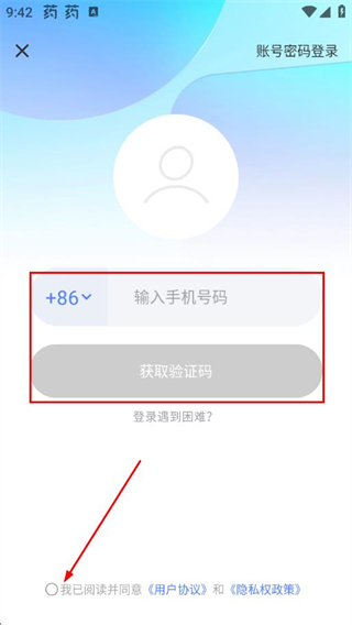 4、输入密码并勾选协议后,点击“登录”按钮,完成账号登录。