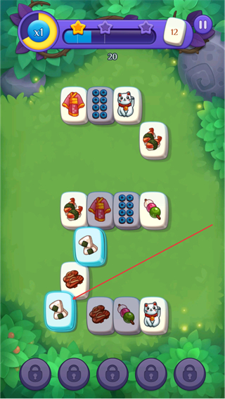 1、观察牌组中的相同图案如寿司、猫咪,优先点击配对消除,积累初始分数。