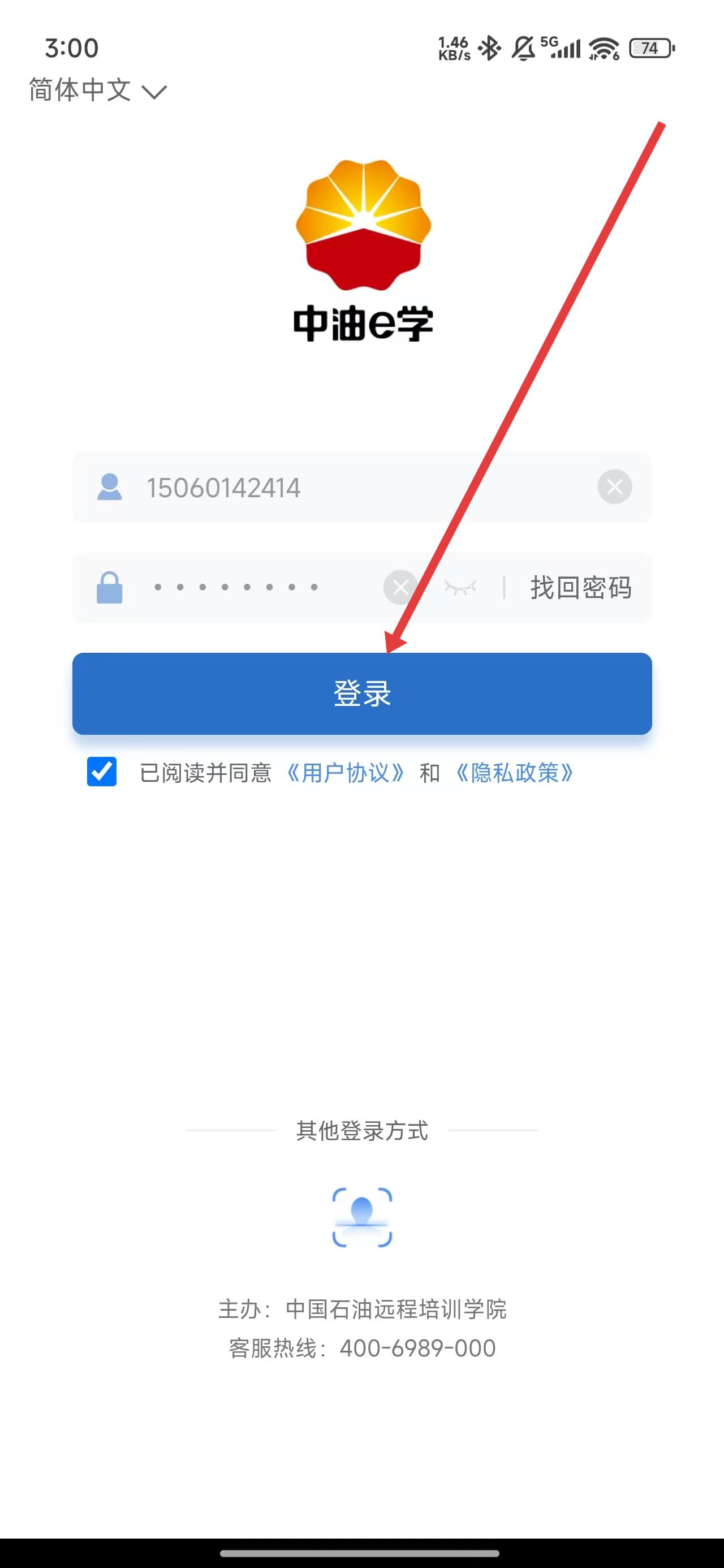 2、在进入到登录页面中,登录前需先点击勾选已阅读并同意按钮后操作。