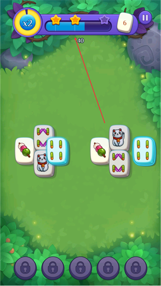 2、持续匹配相同图案的牌如猫咪、糖果,消除后提升分数,推进关卡进度。