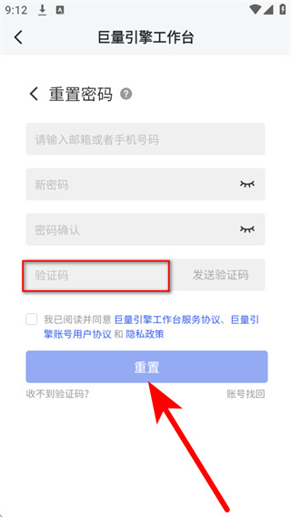 4、将收到的短信验证码填入验证码框,点击重置,即可完成密码的重新设置。