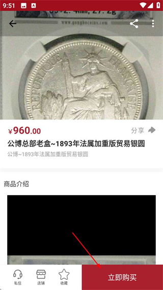 4、在商品详情页面,点击立即购买按钮,即可继续商品的购买流程。
