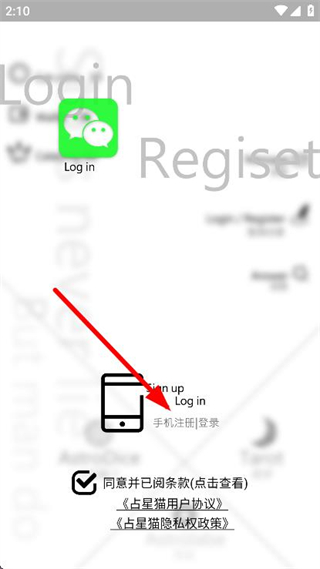 1、打开占星猫,在登录界面点击手机注册|登录选项。
