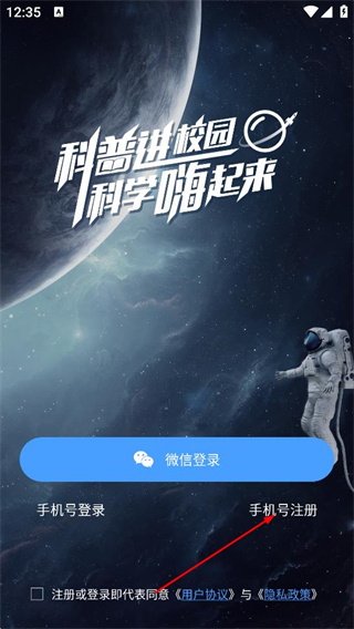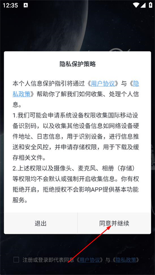 1、阅读用户协议和隐私政策后,点击同意并继续,进入应用的登录选择页面。