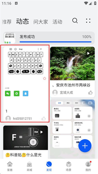 4、点击发布按钮,等待发布成功,即可在动态页面查看发布的帖子。