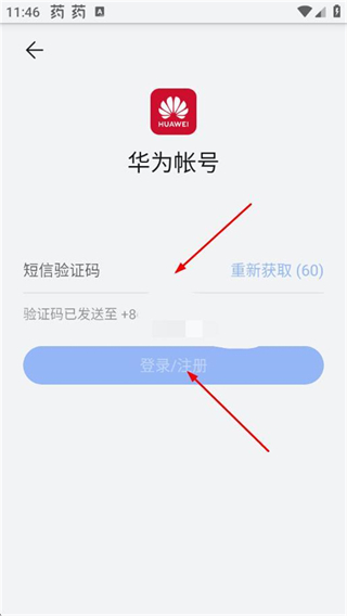 4、在验证码页面,输入收到的短信验证码,点击登录/注册,完成注册。
