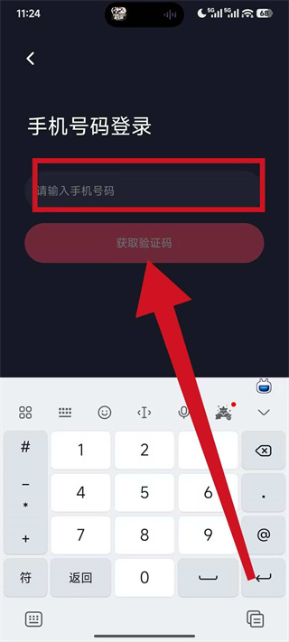 3、在手机号码登录页面的手机号码输入框中,填写要登录的手机号码,点击获取验证码。