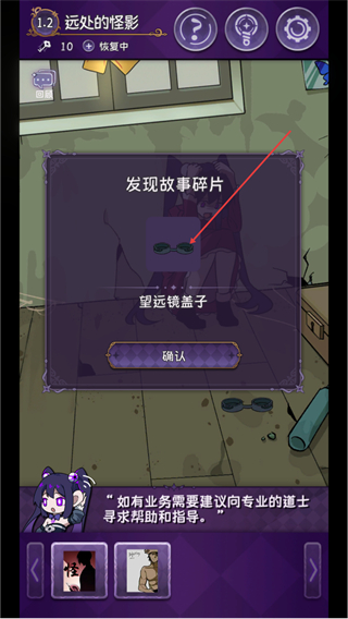 2、发现故事碎片望远镜盒子,点击确认,继续收集线索。